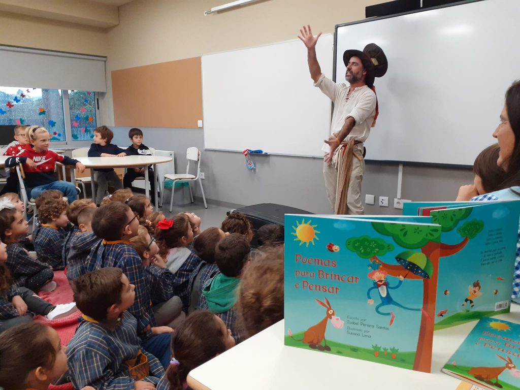 Hora do Conto no final da programação da Semana das Bibliotecas nas BEs das escolas de Ruivães e de Oliveira São Mateus.  Rui Ramos trouxe a magia do mágico Malaquias e de outras personagens que saíram do Livro de Contos ” Poemas para Brincar e Pensar”, escrito por Isabel Pereira Santos e ilustrado por Susana Lima, editado pela Opera Omnia. As crianças do 1.º ano e da EPE dos dois estabelecimentos de ensino e do grupo de AEC na Biblioteca seguiram o Contador de Histórias Rui Ramos pelas peripécias e magia deste Conto. Foram momentos mágicos a fecharem da melhor maneira a programação comemorativa da Semana das Bibliotecas Escolares que decorreu em todas as nossas bibliotecas escolares  de segunda a sexta-feira.!!!