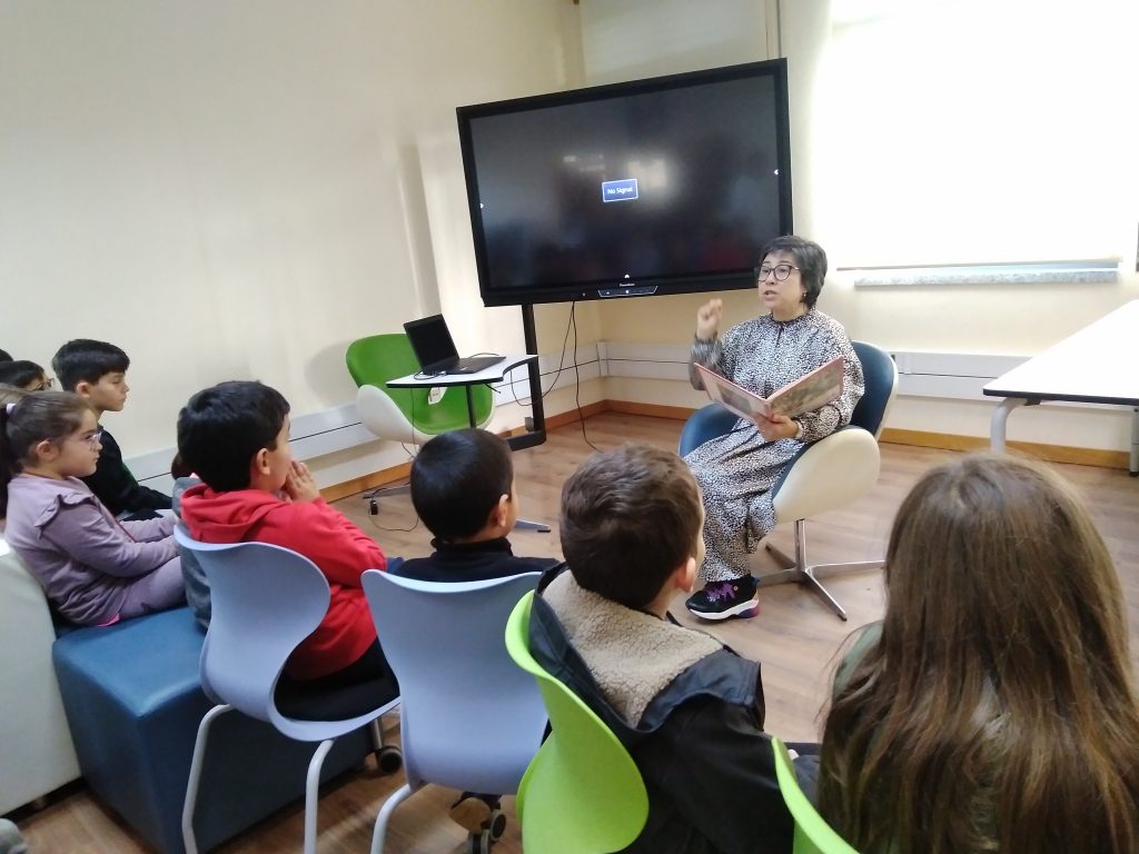 “A verdadeira história do Pai Natal” de Colette Seigue foi a obra lida na hora do conto que foi seguida da visualização do filme de animação “Klaus: a origem do Pai Natal”.