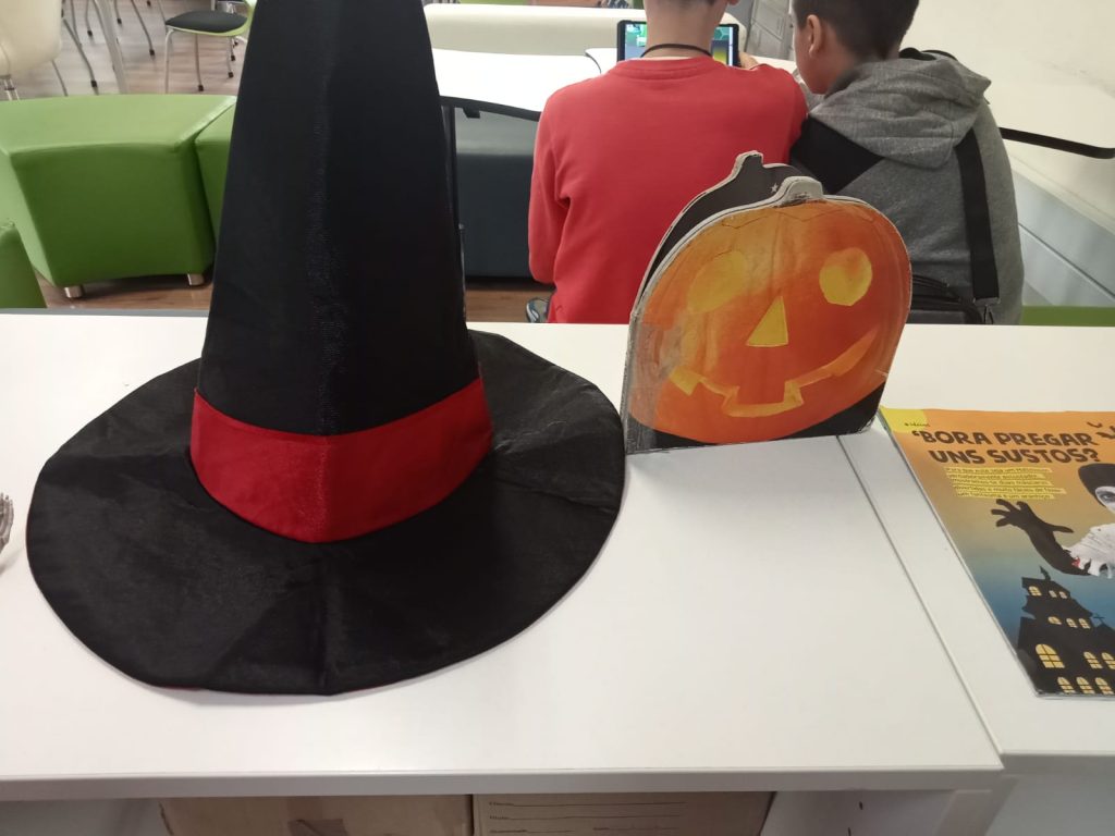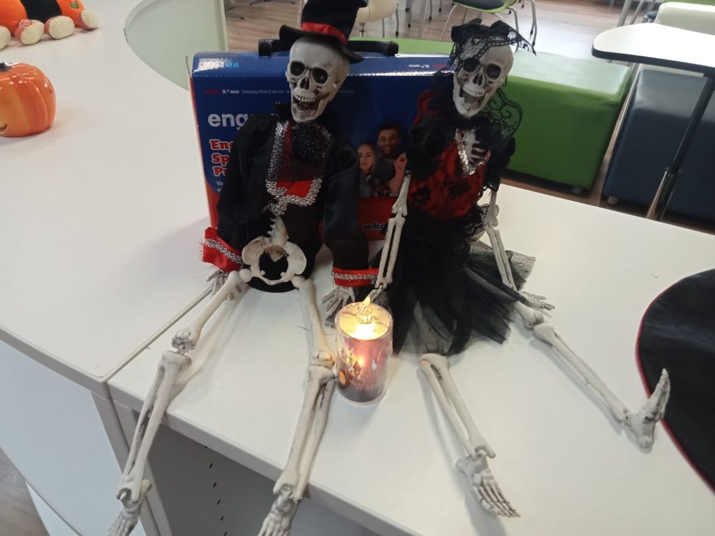 A Biblioteca Sophia de Mello Breyner Andresen da EB Terras do Ave foi decorada pelo departamento de Línguas. Um agradecimento especial às professoras Ivone Carvalho e Célia Castro pela colaboração e adereços! 🙂