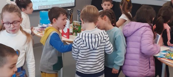A Feira do Livro também é para as crianças da EPE aqueles que serão os futuros leitores… As crianças das Salas da EPE da EB Ruivães visitaram a Feira do Livro na Escola, puderam mexer e ver os livros expostos e ainda tiveram oportunidade de ouvir contar a história do “LOBO QUE QUERIA TER UMA NAMORADA”, um dos títulos expostos na Feira do Livro.