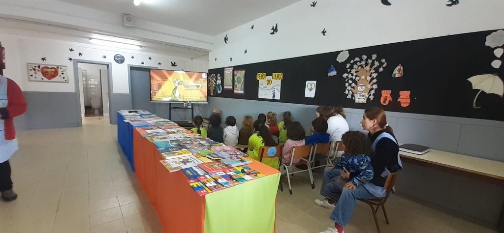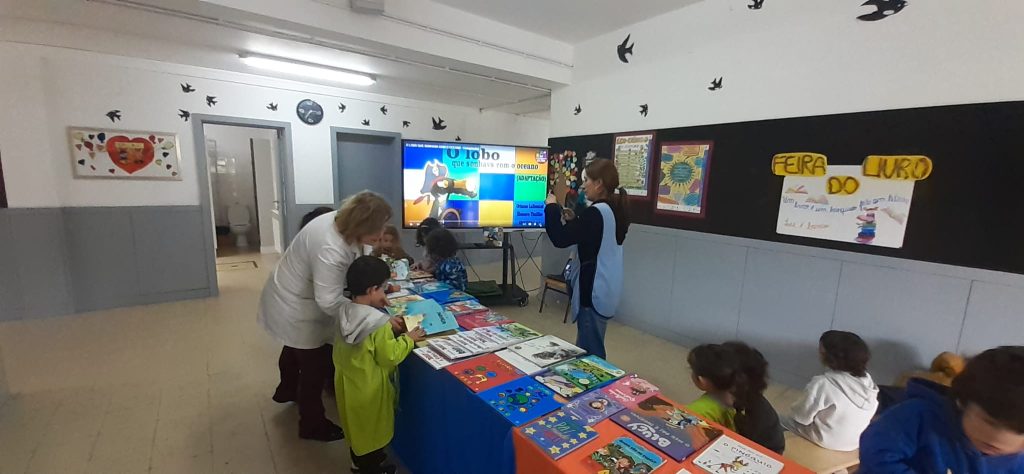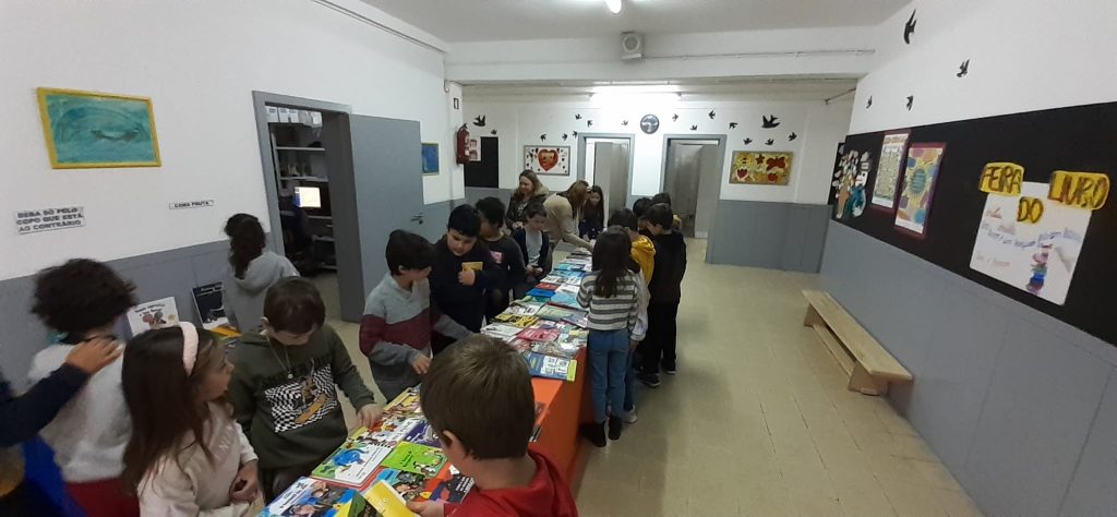 A Feira do Livro passou hoje, quinta-feira, pela Escola Básica de Oliveira São Mateus. Foi com notória alegria e interesse que as crianças e alunos de São Mateus vivenciaram a Feira do Livro. Ao longo do dia, alguns encarregados de educação passaram também pela Feira do Livro, fazendo a esperada surpresa aos pequenos: comprarem, no momento, “aquele” livro tão desejado. Ainda houve tempo para uma Hora do Conto, proporcionada às crianças da Sala da EPE, a partir de um conto de um Livro existente na Feira. Valeu a pena para todos!