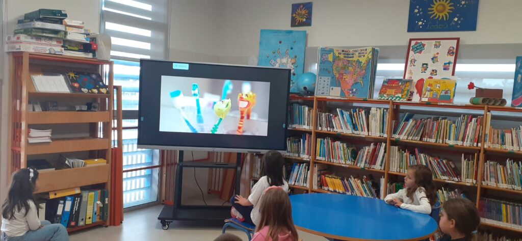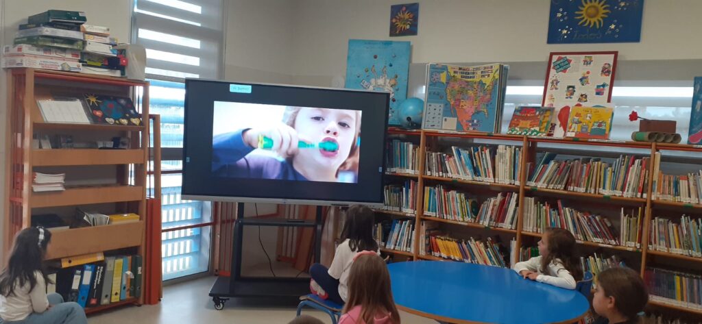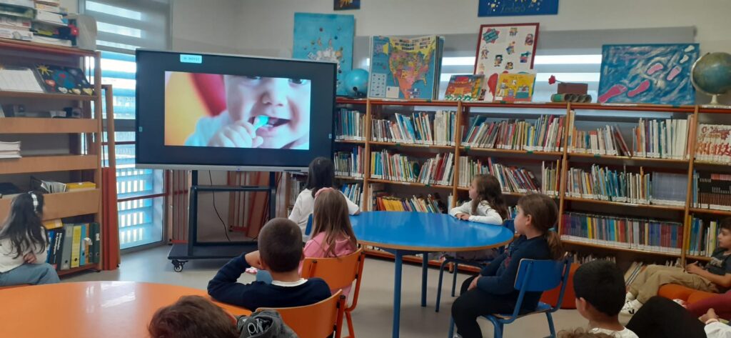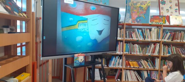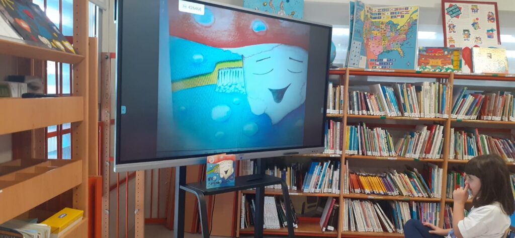 Apresentação da história “KIKO, O DENTINHO DE LEITE” às turmas do 1.º ano e crianças da EPE, nesta semana em que se comemora o Mês das Bibliotecas Escolares . A atividade é articulada com o Projeto SOBE – saúde oral em bibliotecas escolares.