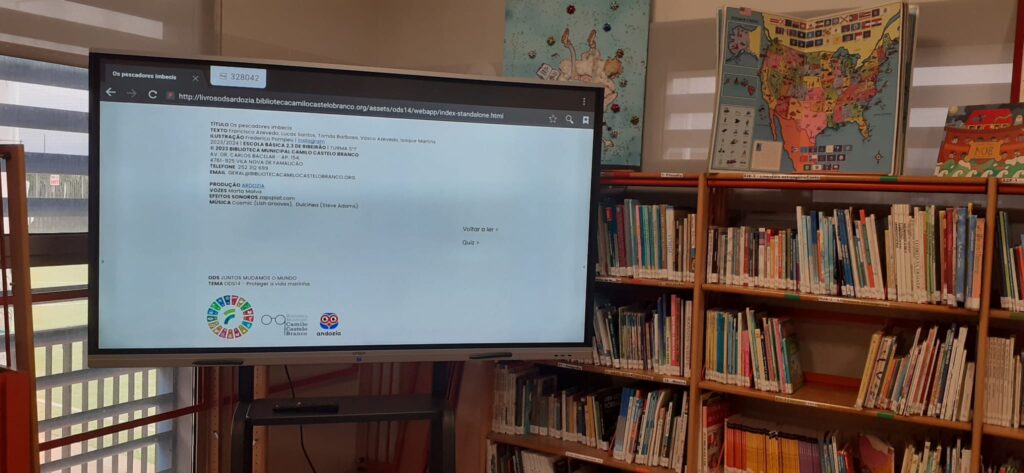 Num tempo em que as alterações climáticas preocupam a humanidade foi explorado o Conto ” OS PESCADORES IMBECIS”, disponibilizado pelo serviço educativo da Biblioteca Municipal. No final, os alunos testaram a sua compreensão leitora executando um Quiz sobre a história apresentada.