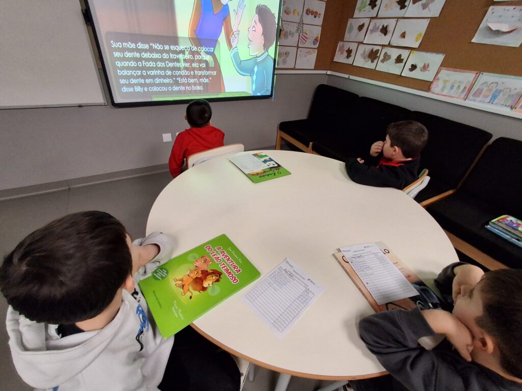 Os meninos da turma do 1.º ano (B1), visitaram a biblioteca escolar e assistiram à apresentação do conto ” O BONECO DE NEVE”. Quem sabe se, em breve, a neve aparece e também eles podem fazer um boneco de neve!…No final da visita os meninos ainda puderam devolver os livros da biblioteca que lhes estavam emprestados e levaram livros novos, emprestados para poderem ouvir ler, em casa, em família!!!