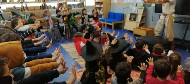 Hora do Conto no final da programação da Semana das Bibliotecas nas BEs das escolas de Ruivães e de Oliveira São Mateus. Rui Ramos trouxe a magia do mágico Malaquias e de outras personagens que saíram do Livro de Contos ” Poemas para Brincar e Pensar”, escrito por Isabel Pereira Santos e ilustrado por Susana Lima, editado pela Opera Omnia. As crianças do 1.º ano e da EPE dos dois estabelecimentos de ensino e do grupo de AEC na Biblioteca seguiram o Contador de Histórias Rui Ramos pelas peripécias e magia deste Conto. Foram momentos mágicos a fecharem da melhor maneira a programação comemorativa da Semana das Bibliotecas Escolares que decorreu em todas as nossas bibliotecas escolares de segunda a sexta-feira.!!!
