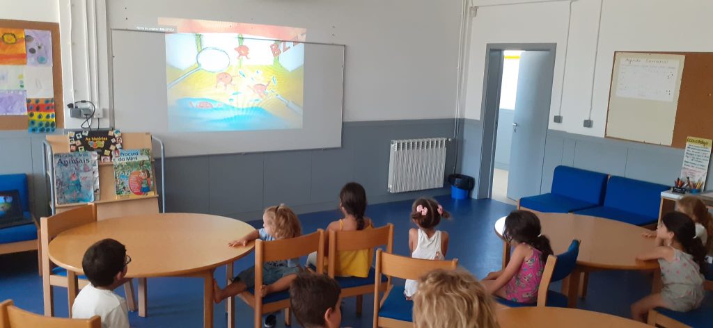 Em parceria com a Opera Omnia e as Bibliotecas Escolares do AETA, as crianças da turma do 1.º ano e das Salas da EPE assistiram à divertida apresentação desta história que os cativou, envolveu e entusiasmou do primeiro ao último momento.