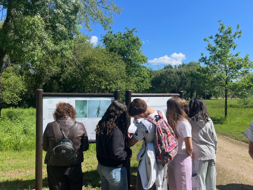 The activities began at the CMIA – Environmental Monitoring and Interpretation Centre, a space dedicated to promoting environmental education and ecological awareness. Through an engaging peddy-paper game, participants were challenged to explore the Biodiversity Station at the Urban Ecological Park, a circular route of approximately 1 km marked by nine informative panels. These panels highlighted various local fauna and flora species, encouraging active observation and fostering direct knowledge of urban biodiversity.