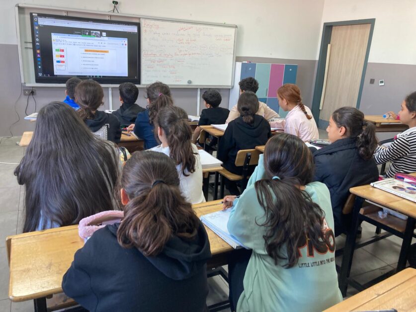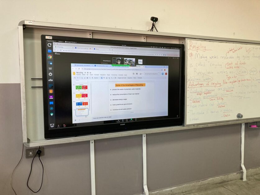 A aula foi ministrada, através de videoconferência, pela professora Ana Isabel Gonçalves, e teve como alunos uma turma do sétimo ano da escola turca, coordenadora do projeto, denominada “15 Temmuz Şehitler Ortaokulu”.