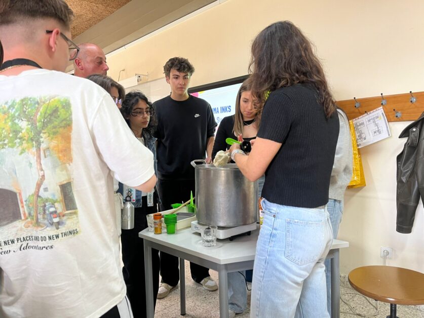 - O primeiro, dinamizado por três alunos do 12.º ano no âmbito da disciplina de Química, centrou-se na produção de tintas sustentáveis, demonstrando criatividade e consciência ambiental.