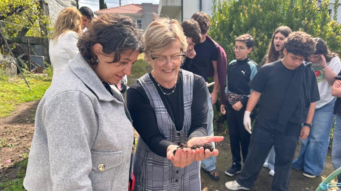 A vermicompostagem é uma técnica ecológica que utiliza minhocas para transformar resíduos orgânicos num composto natural e nutritivo, contribuindo para uma agricultura mais sustentável e reduzindo o impacto ambiental. A visita foi acompanhada pelos professores Anabela Correia e Hélder Ribeiro, que explicaram o funcionamento do projeto e os seus benefícios.