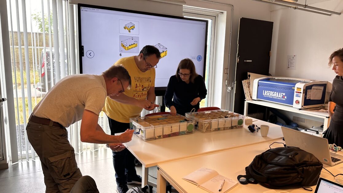Foi, ainda, possível a visita à Universidade de Limburg (UCLL), com especial atenção à Faculdade de Educação, onde os professores tiveram a oportunidade de assistir a uma aula prática em Maker Spaces / STEAM, inserida na formação inicial de futuros docentes. Esta experiência proporcionou uma visão enriquecedora sobre metodologias ativas e o papel da criatividade no ensino das disciplinas STEAM.