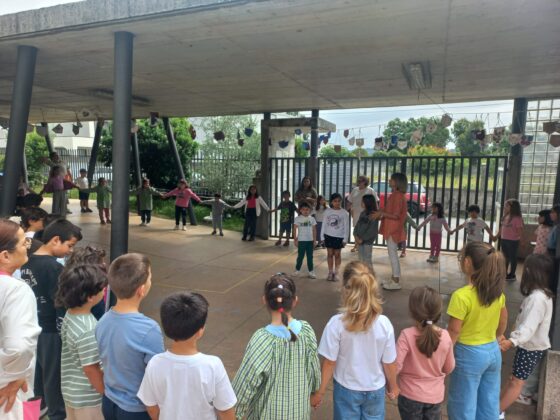 No dia 5 de junho, os alunos da Escola Básica de Bairro receberam ascrianças finalistas do Pré-Escolar do JI e do Centro Social de Bairro, com ointuito de conhecerem e de se familiarizarem com os espaços da escola. Foram acolhidos à entrada pelos alunos do 2º ano da Turma G2B comuma canção e coreografia sobre o Planeta para a comemoração do DiaMundial do Ambiente. Seguidamente, com esta mesma turma, as crianças semearam girassóispara levarem para as suas casas e deles cuidarem. Para o efeito, foramconstruídos vasos ecológicos com recurso a materiais de desperdício, com amensagem: “Vamos proteger a Natureza com abraços de Amor e SEMENTESde Esperança”. No intervalo das aulas brincaram juntos com todos os alunos da escola.Após, estamparam os pés em papel de cenário com os alunos do 4ºano, sob o lema: “Pequenos passos, futuro gigante!”. Seguiu-se a visita guiada à escola realizada com o acompanhamentodos alunos dos quartos anos. Nas salas de aula, entoaram canções, realizaramuma experiência sobre o ar em movimento e apresentaram-se trabalhosdesenvolvidos ao longo do ano.