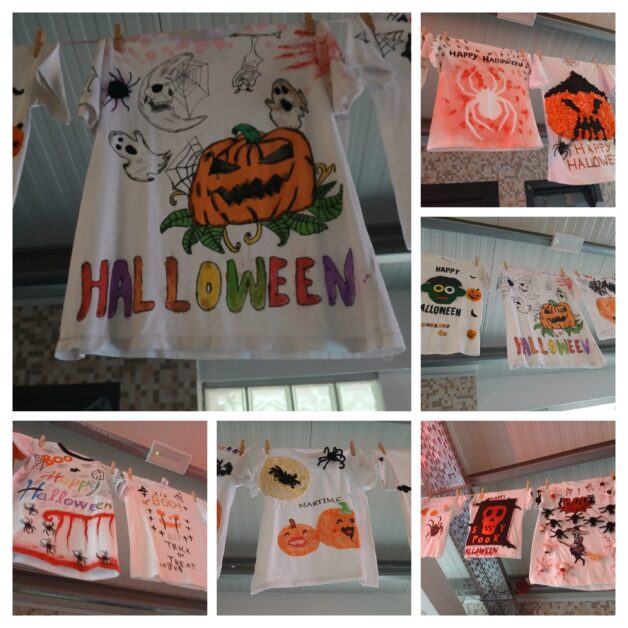 As turmas do 3.º e 4.º anos também se destacaram ao personalizar T-shirts brancas, numa proposta da professora de Inglês. Com a ajuda das famílias, criaram verdadeiras obras de arte, dando uma nova vida a materiais reciclados.