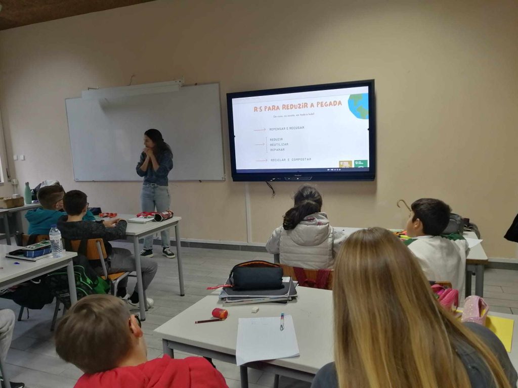 A formadora dinamizou uma sessão bastante interativa e participava, pelo uso de metodologias diversificadas, exposição de produtos ecológicos com uma pegada ecológica mais reduzida e reflexão em grupos. Apresentou a situação de Portugal que está com uma pegada ecológica muito grande. A 7 de maio de 2023 Portugal esgotou os recursos naturais do ano, referentes a água e solo. Alertou que reciclar deve ser a última opção e partilhou a calculadora online, gratuita, em português, para medir a pegada de cada um, através do site https://www.footprintcalculator.org/home/pt. O material usado na palestra foi encaminhado para os alunos a fim de ser explorado e refletido em contexto familiar.