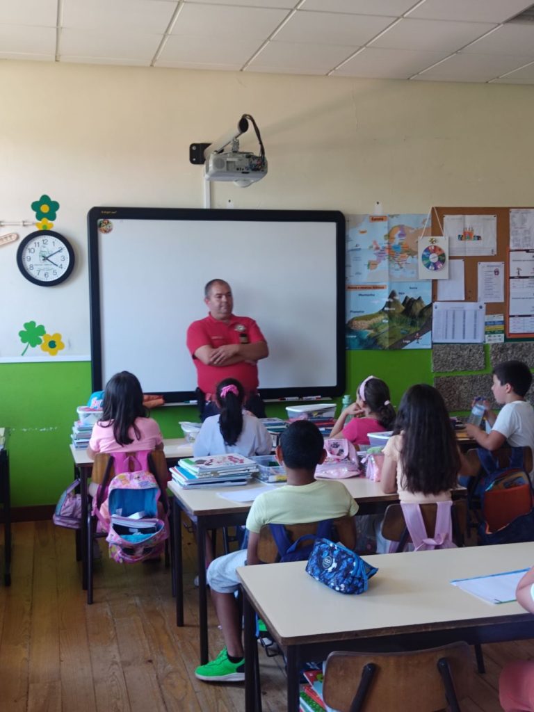 na sua sala de aula. Um bombeiro da corporação de Bombeiros Voluntários de Riba de Ave,