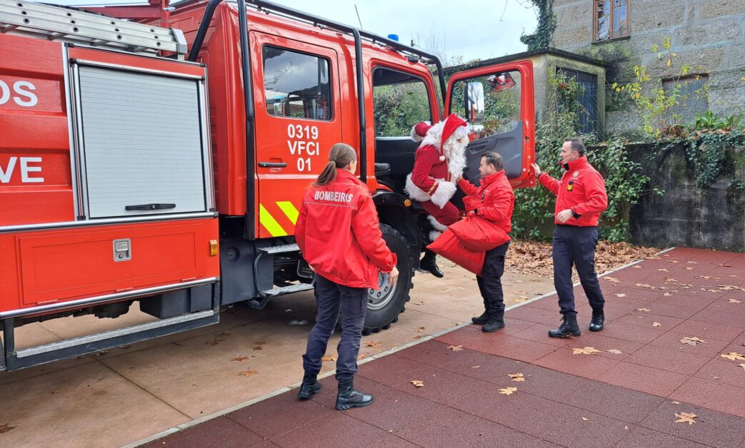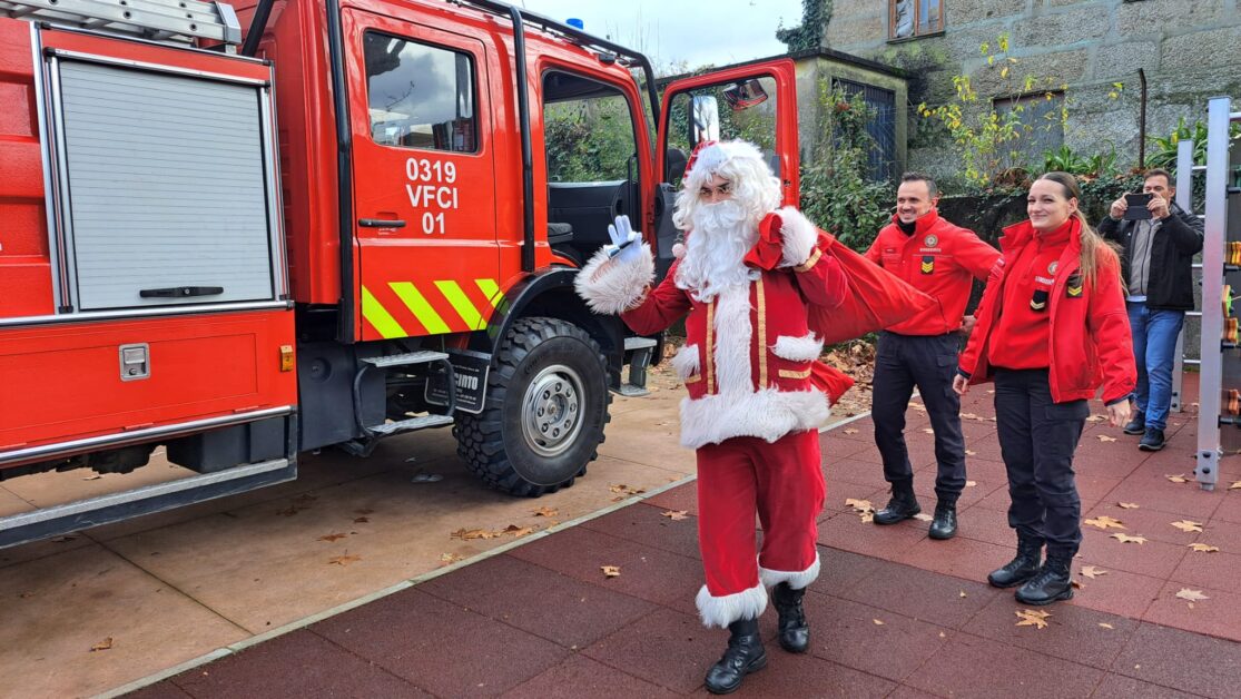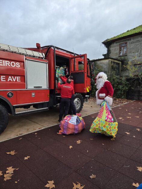 Logo de seguida, receberam a visita do Pai Natal que chegou com a ajuda dos Bombeiros de Riba de Ave. Outro momento de muita euforia que torna inesquecível esta quadra festiva. O Pai Natal veio carregado com muitos presentes para todos os meninos e meninas da nossa escola. Este ano , o Pai Natal não foi embora com os sacos vazios, levou consigo os presentes doados pelos alunos para entregar a quem mais precisa.