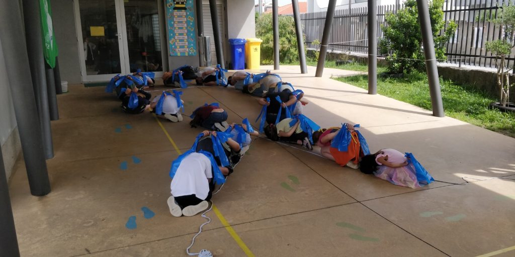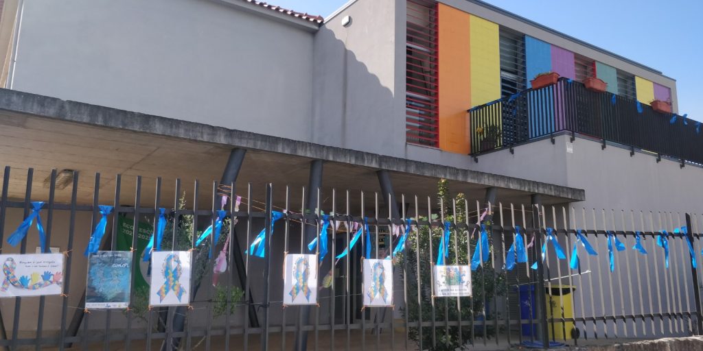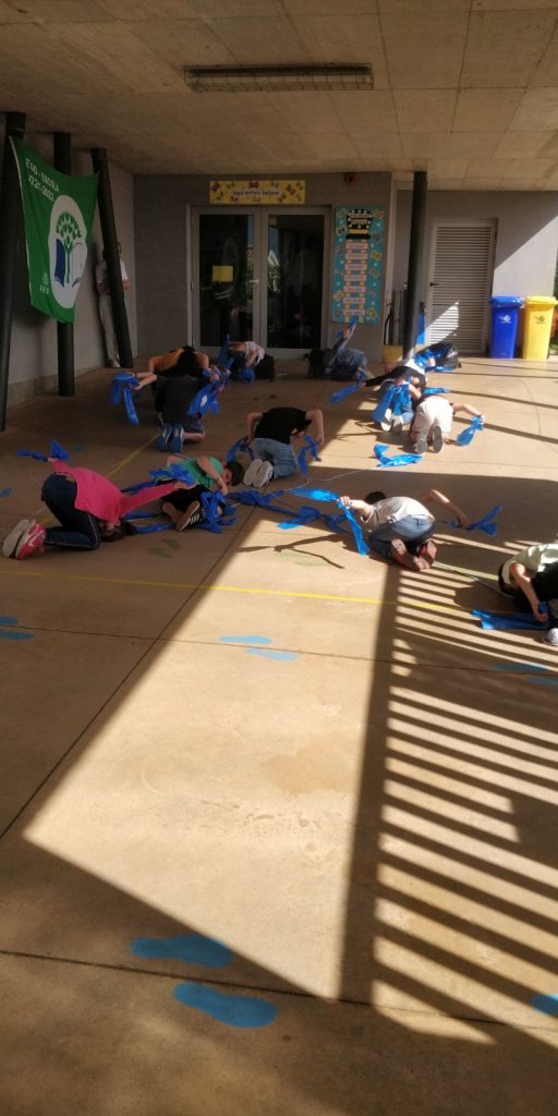 Ao longo do mês de abril a EB/JI de Bairro “vestiu-se” de azul, com laços e cartazes sensibilizando a comunidade para a prevenção dos maus tratos infantis. Esta sensibilização culminou na realização de laços humanos no recreio da escola. Os alunos, por turma, posicionaram-se de forma a construir este símbolo, tomando consciência de que todos temos responsabilidade na prevenção e na ajuda às vitimas.
