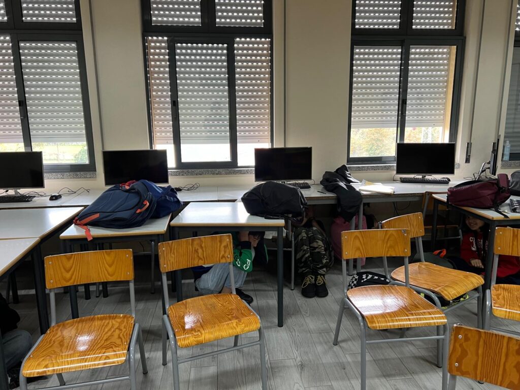Hoje, 5 de novembro, o Agrupamento de Escolas Terras do Ave, AETA, aderiu ao exercício nacional de sensibilização para o risco sísmico, “A TERRA TREME”, promovido pela Autoridade Nacional de Emergência e Proteção Civil (ANEPC). Às 11h05, a campainha soou, marcando o início do exercício em simultâneo em todo o país e convidando a comunidade escolar a praticar três gestos essenciais para a segurança em caso de sismo: BAIXAR, PROTEGER e AGUARDAR.