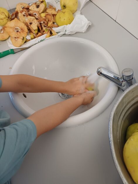 Para dar início ao tema “Alimentação Saudável”, os alunos do 1.º ano da EB Bairro, do Agrupamento de Escolas Terras do Ave, trabalharam a história “Corre, corre, cabacinha”, as crianças exploraram a importância dos alimentos naturais e do papel das frutas e legumes numa alimentação equilibrada. Inspirados pela leitura, os alunos elaboraram cartazes coloridos sobre os diferentes grupos alimentares e confecionaram marmelada caseira, com o apoio e colaboração das famílias — uma atividade que uniu escola e casa num verdadeiro espírito de partilha.