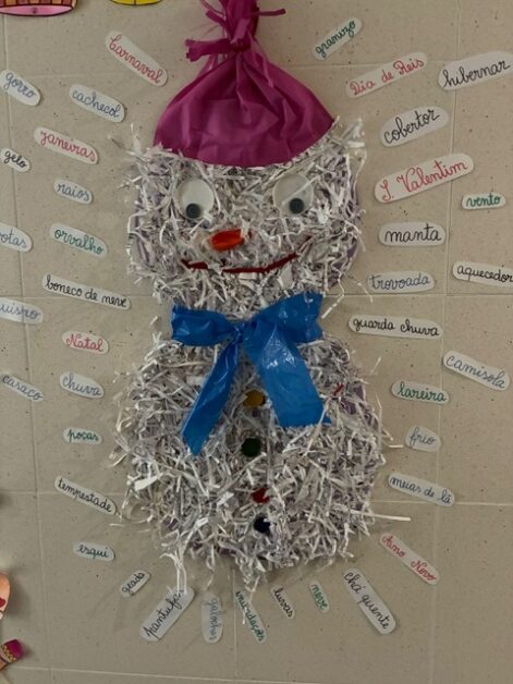Como resultado deste trabalho, foi criado um painel de inverno, recorrendo exclusivamente a materiais reutilizados, promovendo a criatividade, a consciência ambiental e a valorização da reutilização como prática sustentável.