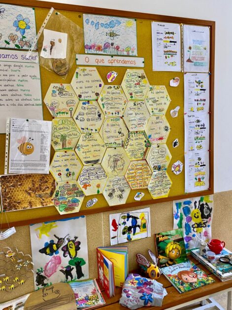 Sabiam que se as abelhas desaparecessem da face da Terra, o nosso planeta teria apenas mais quatro anos de existência? A partir do interesse manifestado pelo tema das abelhas, as crianças do JI de Bente fizeram inúmeras aprendizagens reveladoras da importância ecológica destes animais, por serem excelentes polinizadores e contribuirem para a diversidade das plantas e para a agricultura.
