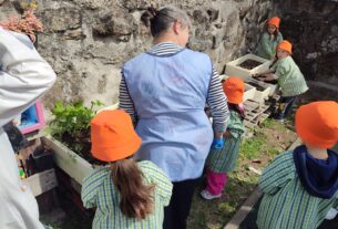 A manhã terminou com uma desfolhada em que todos puderam desfolhar e ensacar as espigas de milho, que servirão de alimento aos animais que ali vivem.