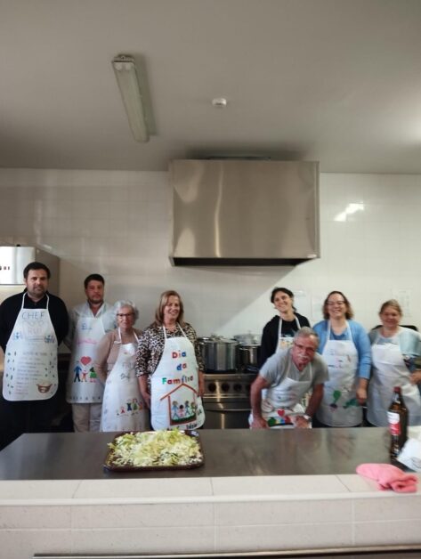 Dia 15 de maio celebrou-se na EB Bairro o “Dia da Família”. Ao longo da semana realizaram-se várias atividades sobre a importância da família. Ouviram-se histórias, canções e as crianças partilharam as suas experiencias em família. A relação escola-família é fundamental ao desenvolvimento global das crianças e nesse sentido foi preposto que cada turma escolhesse um familiar que viesse à escola cozinhar uma sopa. Cada criança trouxe um ingrediente e com as favas cultivadas na horta da escola fizemos uma sopa de favas e todos participamos na sua confeção e no fim comemos. Estava uma delicia! Para os familiares que vieram cozinhar, cada turma decorou um avental que eles usaram na cozinha, e que bonitos estavam.