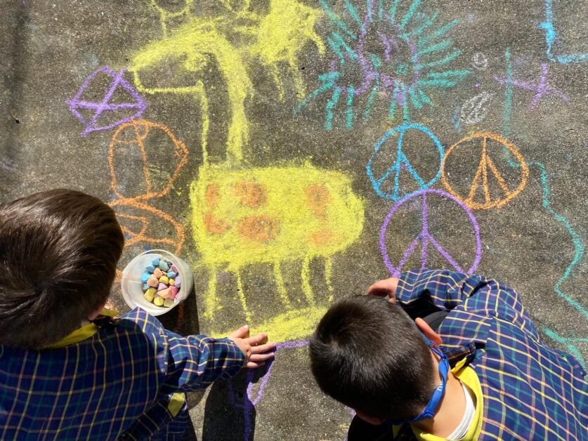 Foi também colocado no gradeamento exterior um pano com algumas mensagens alusivas ao tema, no sentido de incentivar, em toda a comunidade educativa, uma cultura de paz e não violência.