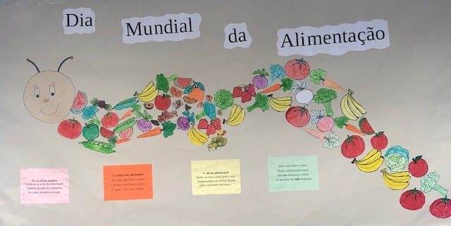 A par desta atividade foi construído um cartaz para decorar a cantina da nossa escola, a partir de recortes de revistas e panfletos de alimentos saudáveis… Os alunos, ainda, cantaram canções e escreveram poemas alusivos à data. Os alunos de 3.º e 4.º anos, participaram também, na atividade “Passe Rua”, com a realização de diversos jogos, relacionados com a alimentação.