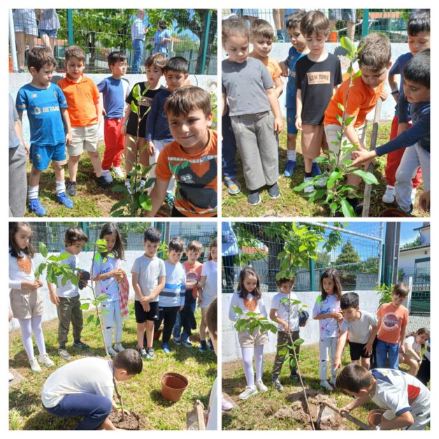 A EB de Castelões celebrou esta data, aproveitando para içar a Bandeira Eco-Escola referente ao ano 2023/2024 e fazer a plantação de quatro árvores de fruto, no jardim da escola ainda em obras de recuperação.
