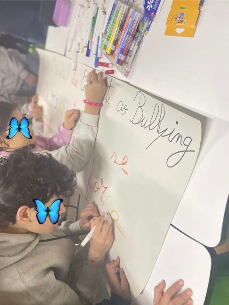 No âmbito do Dia Mundial do Combate ao Bullying, os alunos pintaram um cartaz alusivo ao tema, reforçando a importância do respeito, da amizade e da união entre todos.