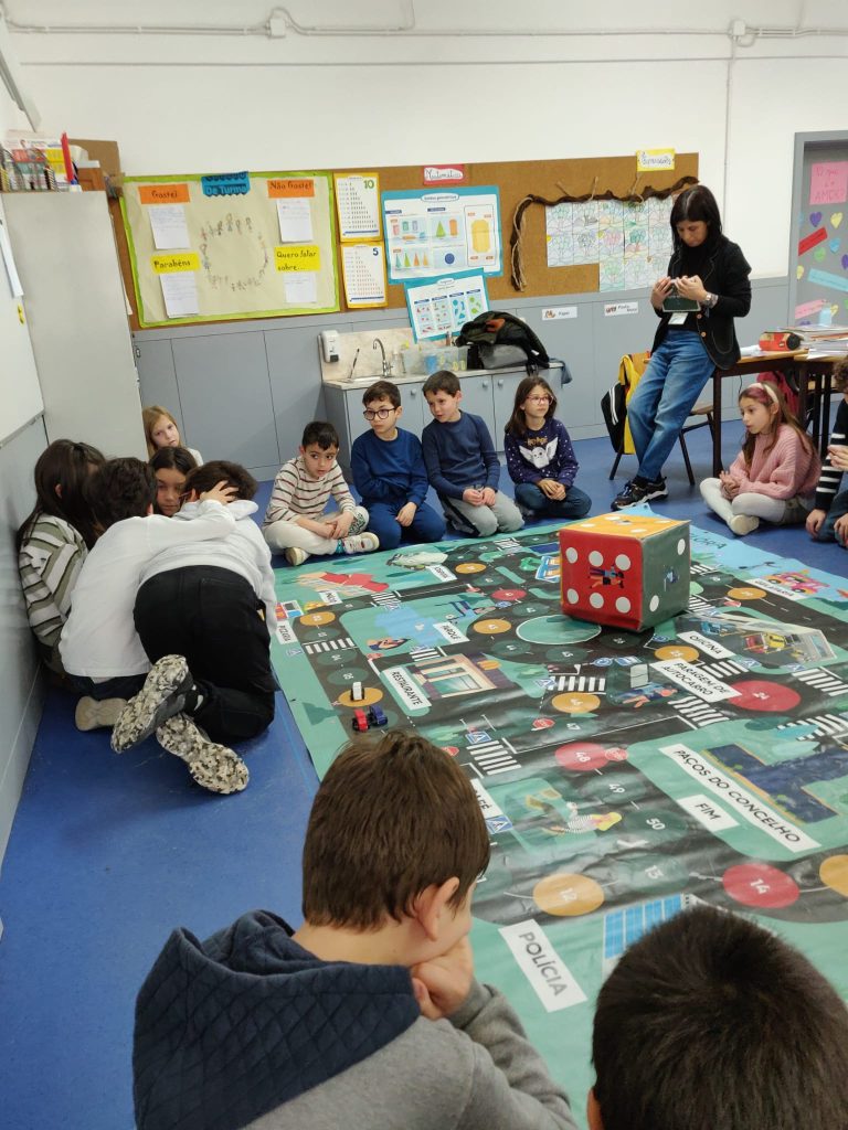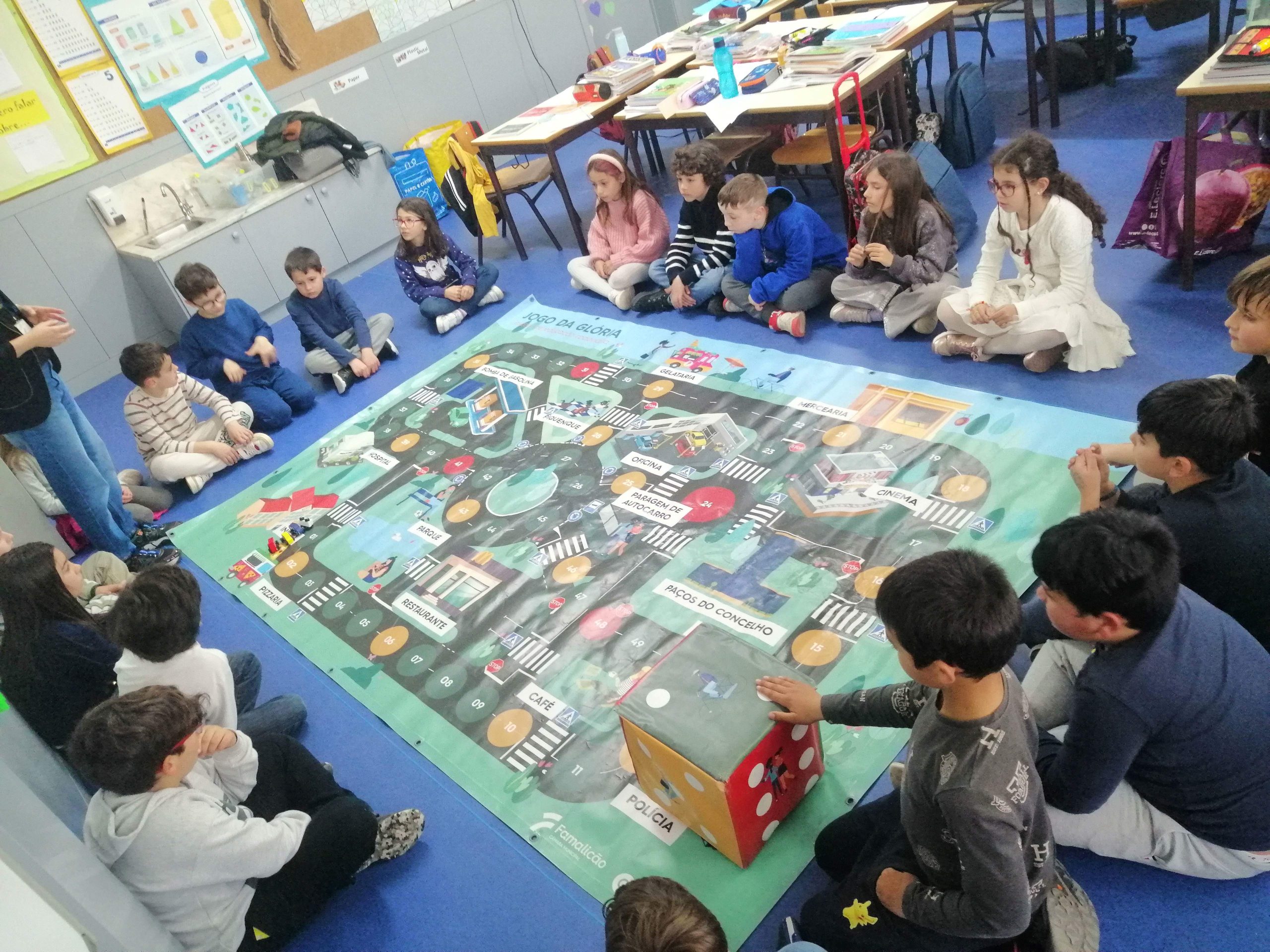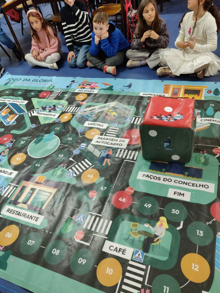 De forma lúdica e muito divertida, com o jogo da Glória gigante, testamos os nossos conhecimentos e aprendemos mais sobre a nossa segurança e os cuidados a ter quando circulamos nas ruas como peões, passageiros, ciclistas ou condutores.