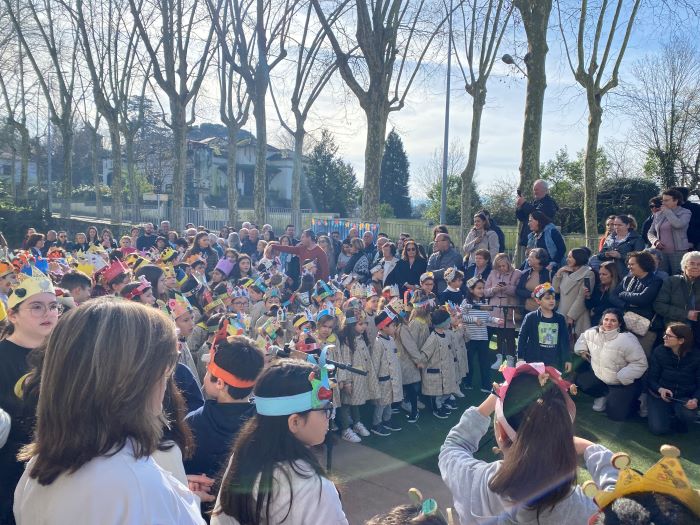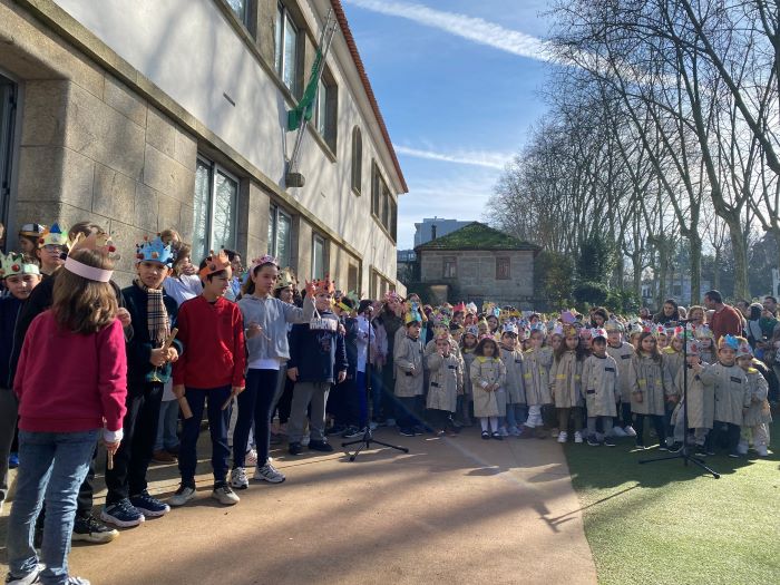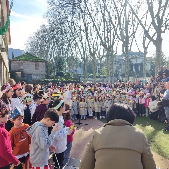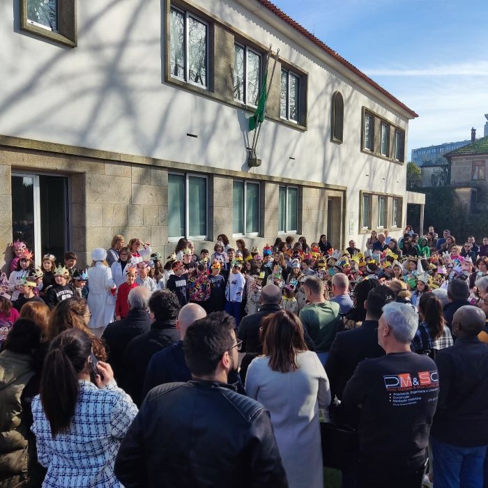 Todas as crianças “coroadas” com a respetiva coroa, decorada por cada criança ou família, entoaram os “reis” sob a orientação da professora Isabel.