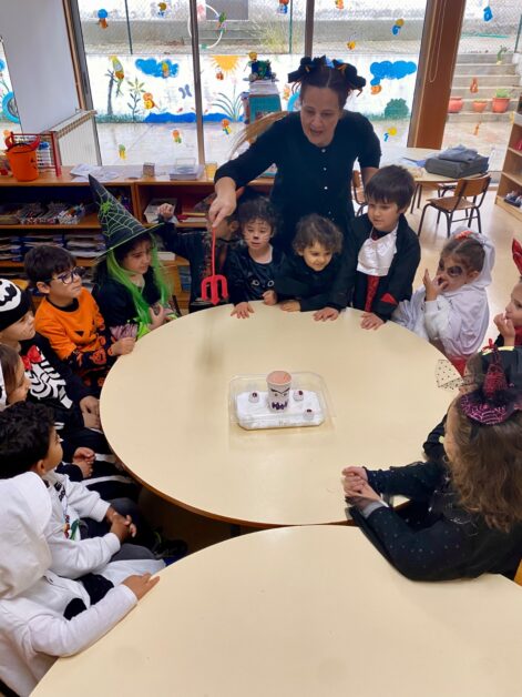 A semana que antecedeu o Halloween permitiu concretizar, no JI de Bente, um conjunto de experiências e aprendizagens diversificadas, em resultado da planificação desenvolvida em colaboração com as crianças e assente na sua motivação e interesses. Em torno da temática do Halloween, foram desenvolvidas atividades experimentais, de linguagem/ comunicação, de expressão artística e motora, estimuladoras da imaginação, da criatividade; promotoras do desenvolvimento pessoal e social e da articulação com a comunidade envolvente.