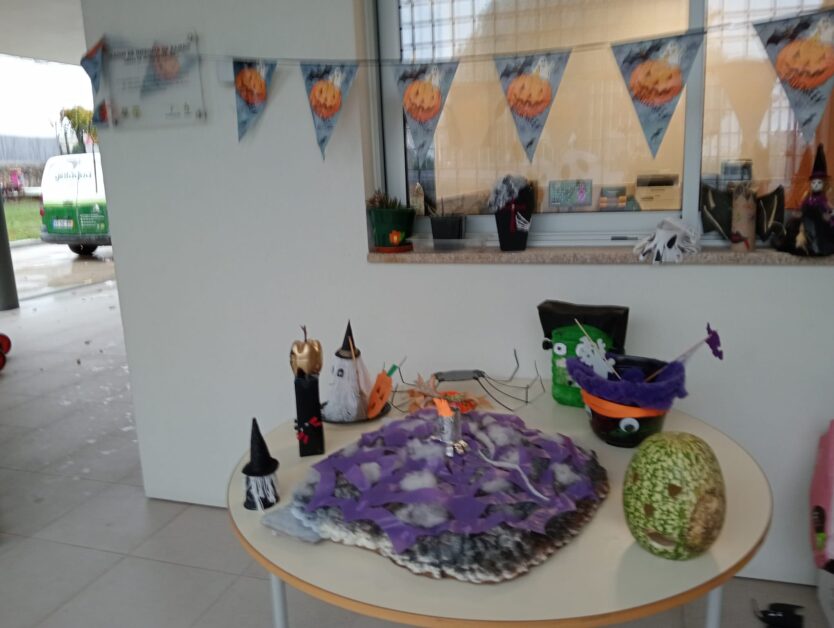 Com a colaboração das famílias e a participação no projeto Eco-escolas, as famílias elaboraram objetos alusivos ao Halloween, com materiais reutilizáveis que foram expostos nas instalações do JI.