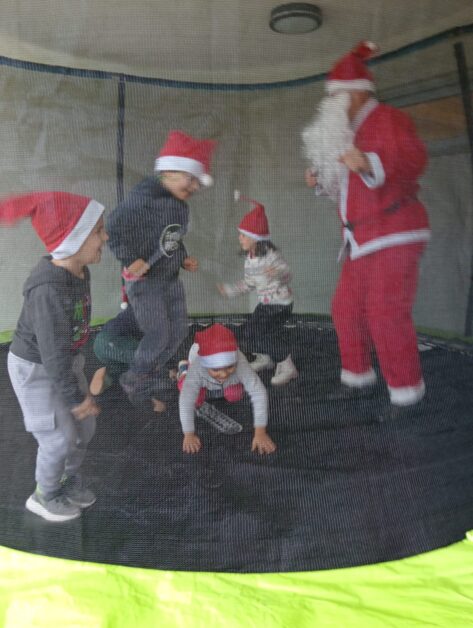 A manhã de 16 de dezembro, no Jardim de Infância de Bairro, foi repleta de alegria e surpresas, destacando-se o momento mágico da chegada do Pai Natal, que estava escondido numa grande prenda: um trampolim. A reação das crianças foi magnífica, tornando este momento inesquecível.