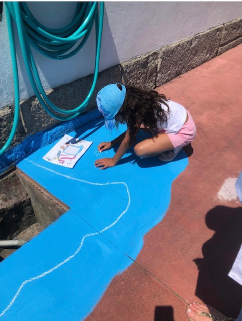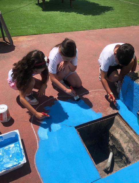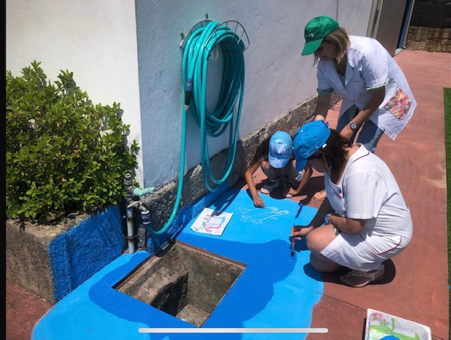 Tendo em conta o Projeto “Eco-Escolas”, os meninos da Escola da Carreira pintaram uma sarjeta, no recreio da escola.