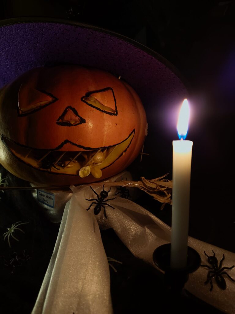A escola amanheceu terrífica! Um túnel assustador levava as pestinhas, de olhar assustado, até cada uma das salas de aula. Obra de Seres Noturnos que se dedicaram a “embelebruxar” o espaço da escola hoje mais dedicado às brincadeiras de Halloween.